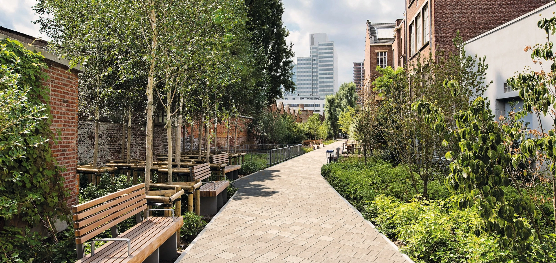 In dicht bebauten städtischen Gebieten treffen zahlreiche Herausforderungen aufeinander: Versiegelte Flächen verhindern, dass Regenwasser in den Boden versickert. Starke Regenfälle überlasten die Kanalisation und erhöhen die Überschwemmungsgefahr. Gleichzeitig erwärmen sich herkömmliche befestigte Flächen stark und verstärken die Entstehung von städtischen Wärmeinseln.