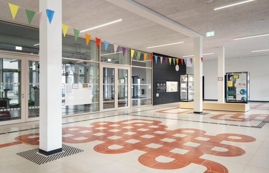 Am 1. März 2024 wurde in Alt-Hohenschönhausen eine neue modulare Grundschule mit Sporthalle eröffnet, die Platz für 432 Schüler*innen bietet. Nachhaltige Bauweise, ein innovatives Entwässerungssystem und das rote Kunstwerk von Veronike Hinsberg prägen das Projekt.