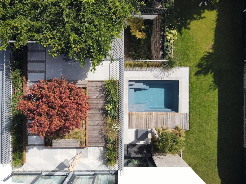 Für uns spielt die Auswahl von Materialien und Pflanzen in Harmonie mit der vorhandenen Architektur eine entscheidende Rolle. Die Kunst der Gartenarchitektur besteht in der feinen Abstimmung zwischen Farbe und Form, Licht und Raum. Der Charakter verschiedener Materialien kommt erst wirklich zur Geltung, wenn die Qualität der Verarbeitung und das Wissen um die Eigenschaften der Baustoffe damit übereinstimmen.